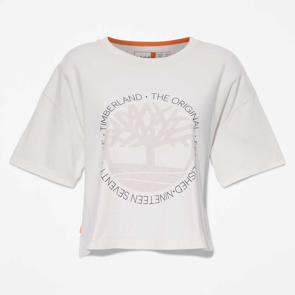 Because we're committed to trying to lessen our impact on the planet,we embellished this pretty cropped tee with our oversized tree logo and crafted it from cotton grown without harmful chemicals or pesticides.