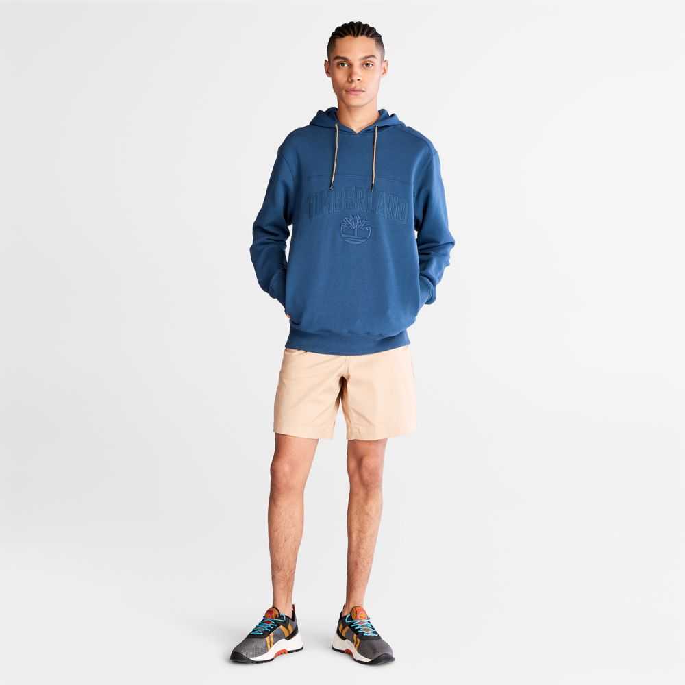 A large,tonal Timberland tree logo graces this men's hoodie,which has been responsibly crafted with fabric containing 30% recycled post-consumer cotton and 70% cotton that's been organically grown.