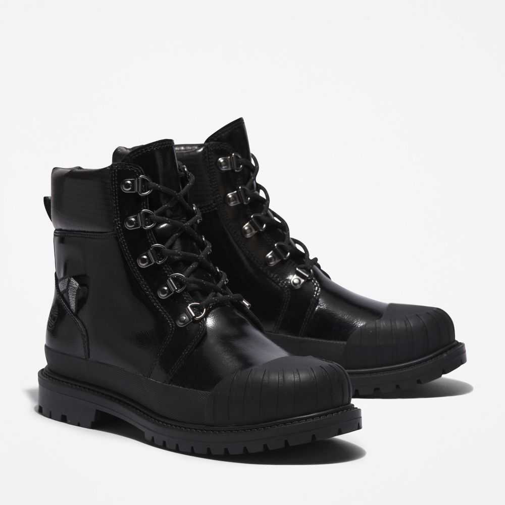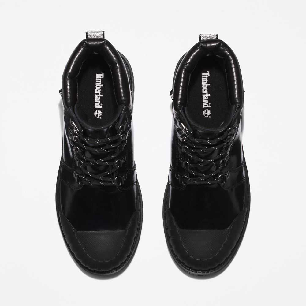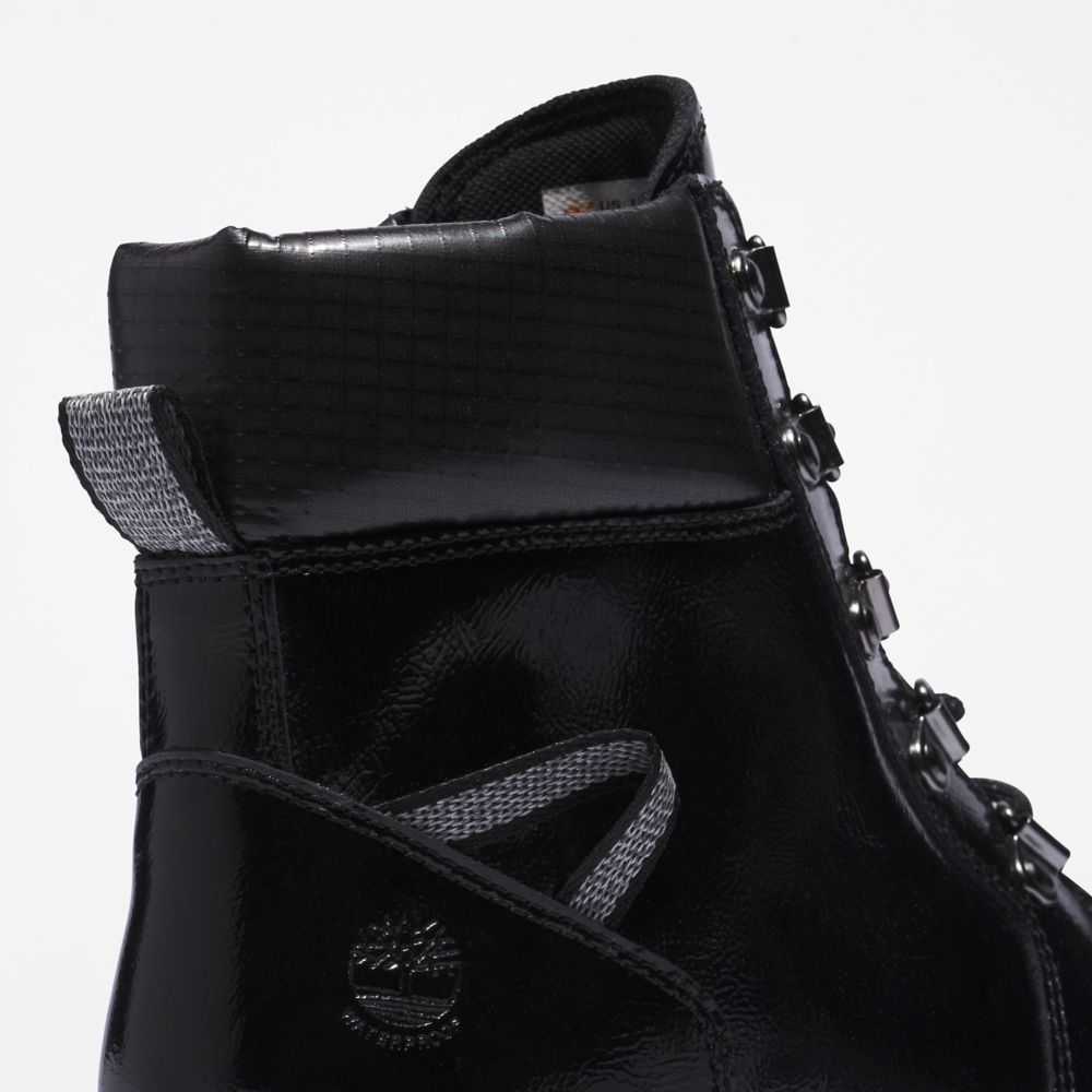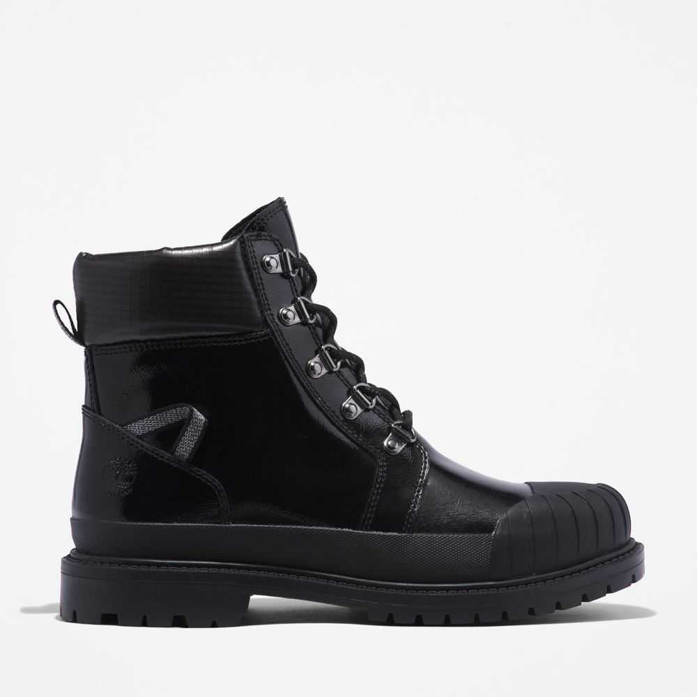 Boots with attitude.Their edgy look is backed by powerful features,including a steel shank for arch support,speed-lacing system,rubber toe bumper,and high-traction rubber lug outsole.They're also crafted with eco-conscious materials—including our exclusive TimberDry™ waterproof membrane made of 50% recycled plastic bottles.