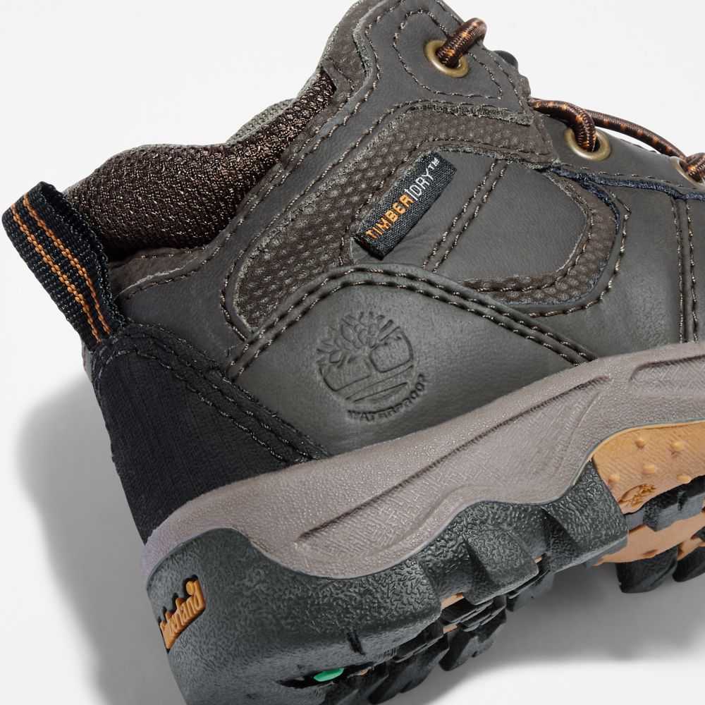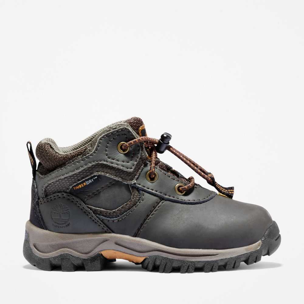 The TimberDry™ membrane made of 50% recycled plastic makes these kids' hiking boots completely waterproof,while the "Does it Fit?" sockliner lets you know when it's time for a bigger pair.