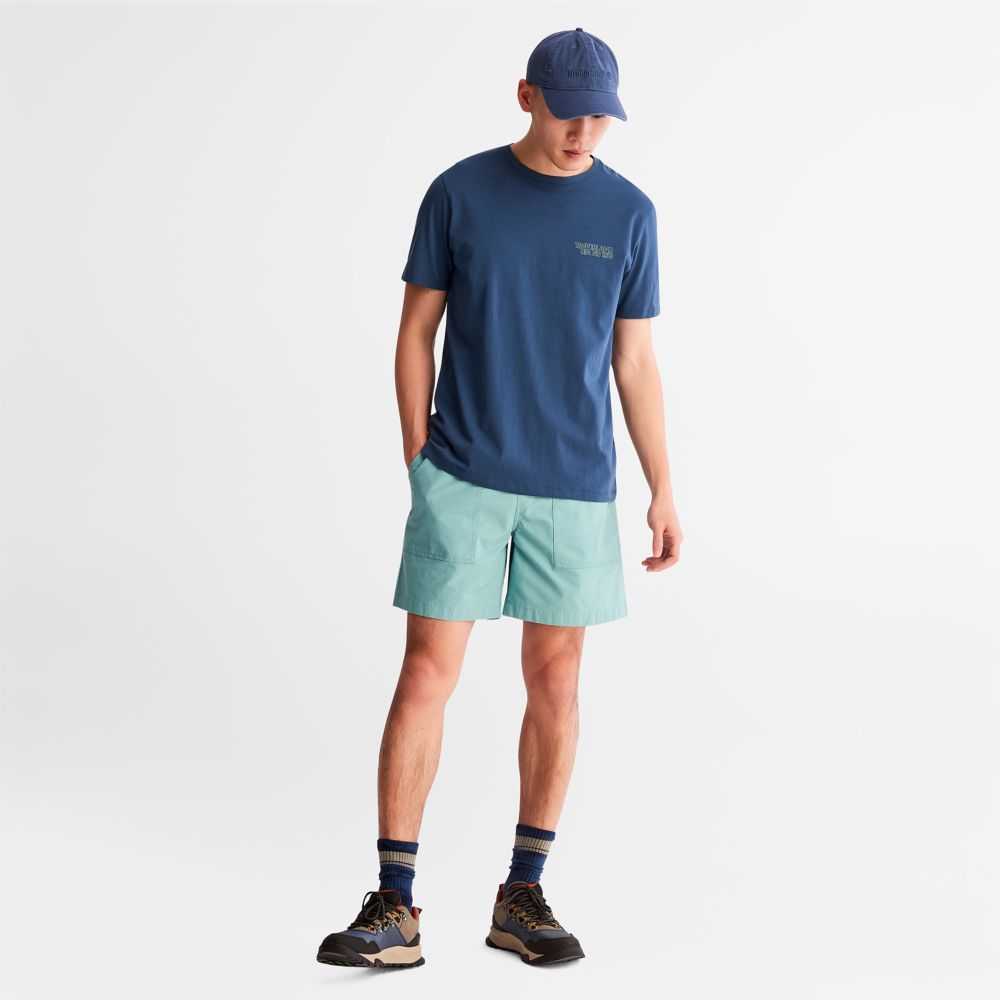 Worksite-inspired design at the edge of utility.Made with a touch of stretch for comfort,these men's shorts also feature an elastic drawcord waistband for fit,three handy pockets,and fabric containing 98% cotton grown without harmful chemicals or pesticides.