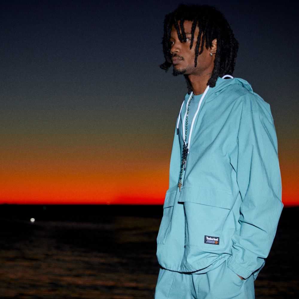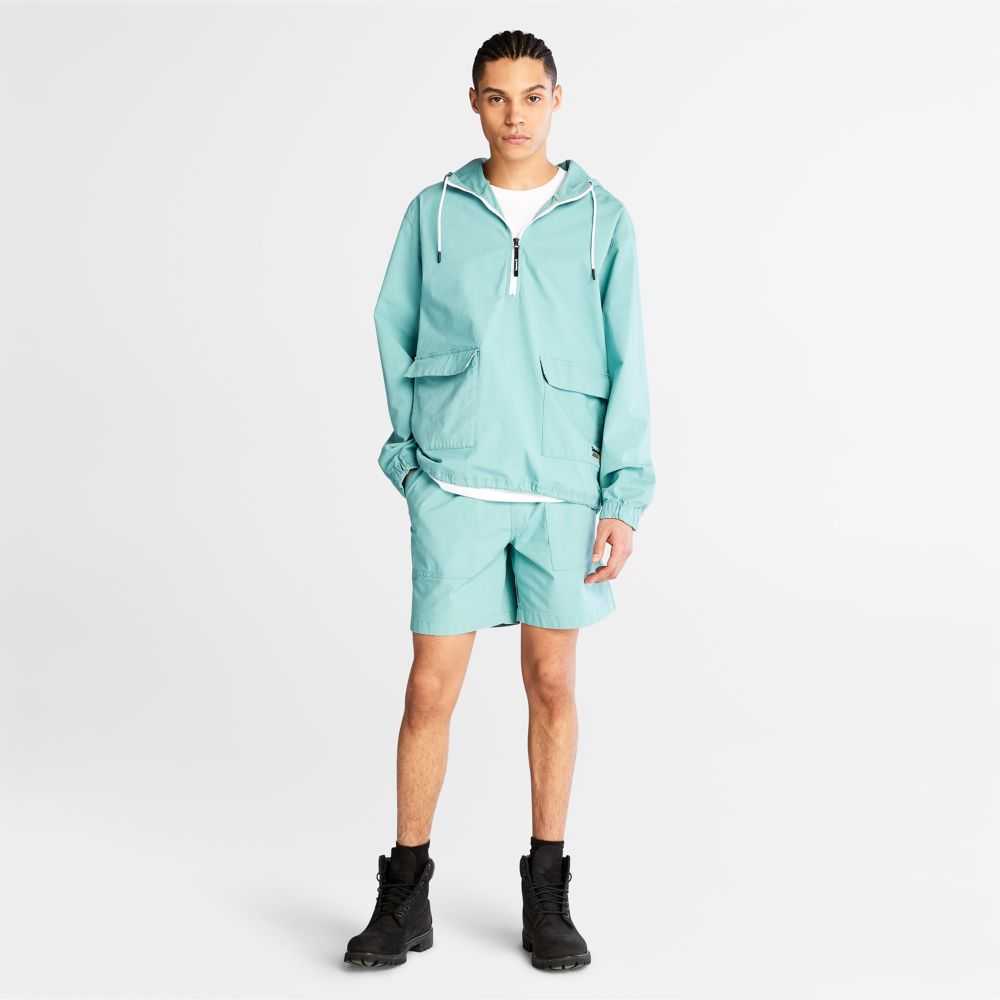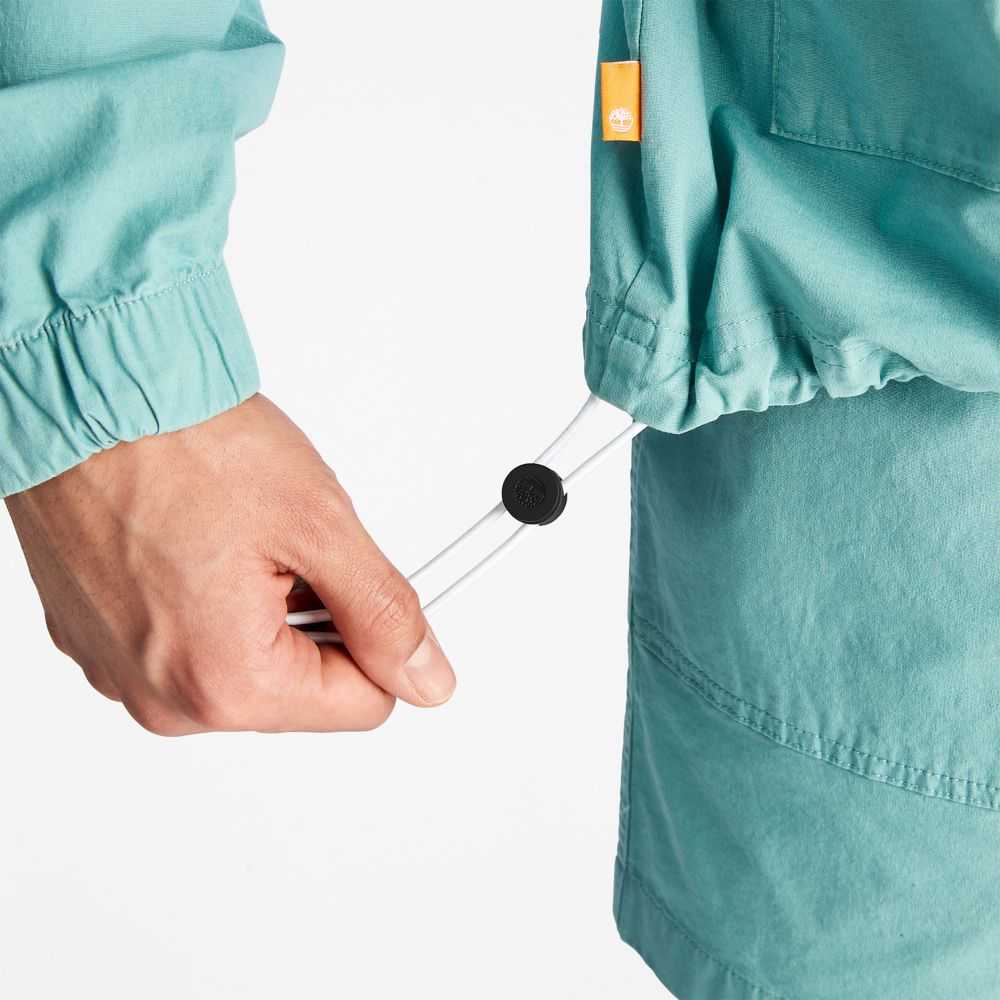 Worksite-inspired design at the edge of utility.Made with a touch of stretch for comfort,this men's anorak features a half-zip opening,adjustable hood,cargo front pockets,and fabric containing 98% cotton grown without harmful chemicals or pesticides.