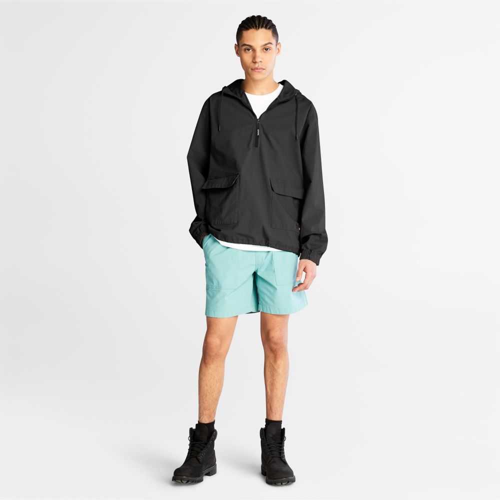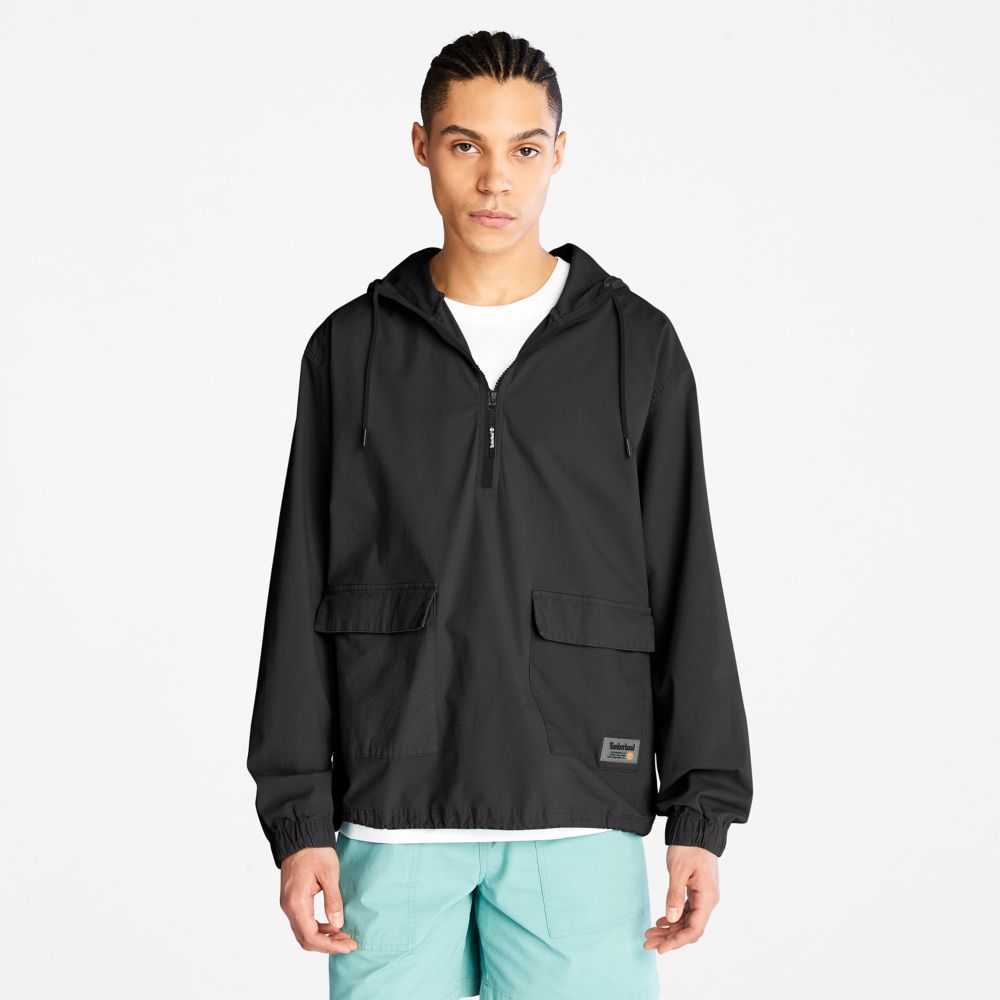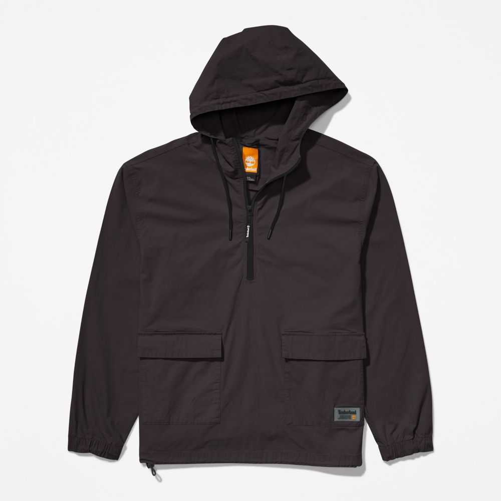 Worksite-inspired design at the edge of utility.Made with a touch of stretch for comfort,this men's anorak features a half-zip opening,adjustable hood,cargo front pockets,and fabric containing 98% cotton grown without harmful chemicals or pesticides.
