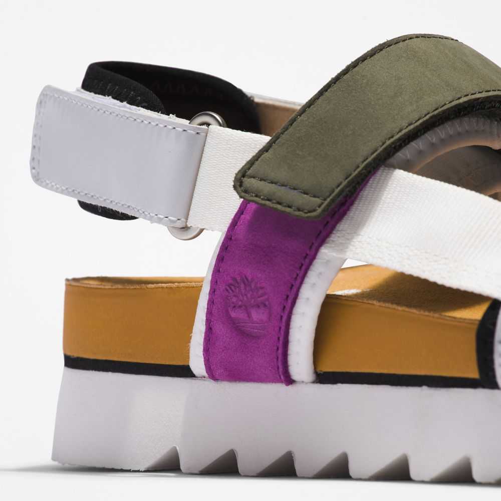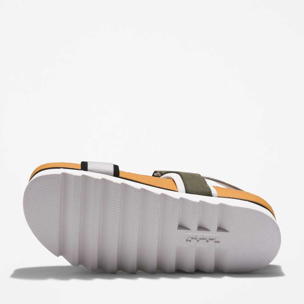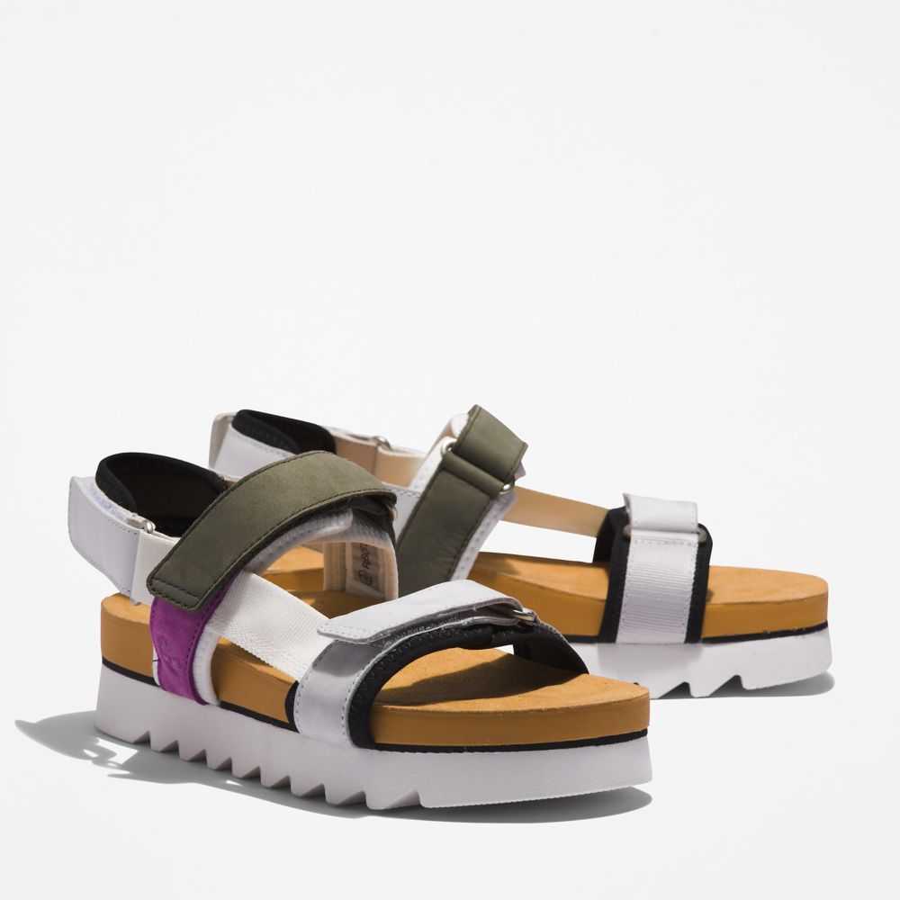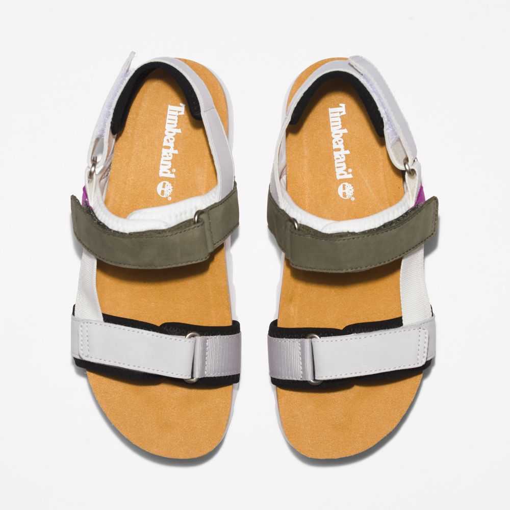 The picture of summer ease: casual women's sandals with plenty of cushioning underfoot,secure webbing straps that can hold up to a sandy beach,and convenient hook-and-loop closure.They also contain leather from a tannery rated silver by the Leather Working Group for its environmental practices.