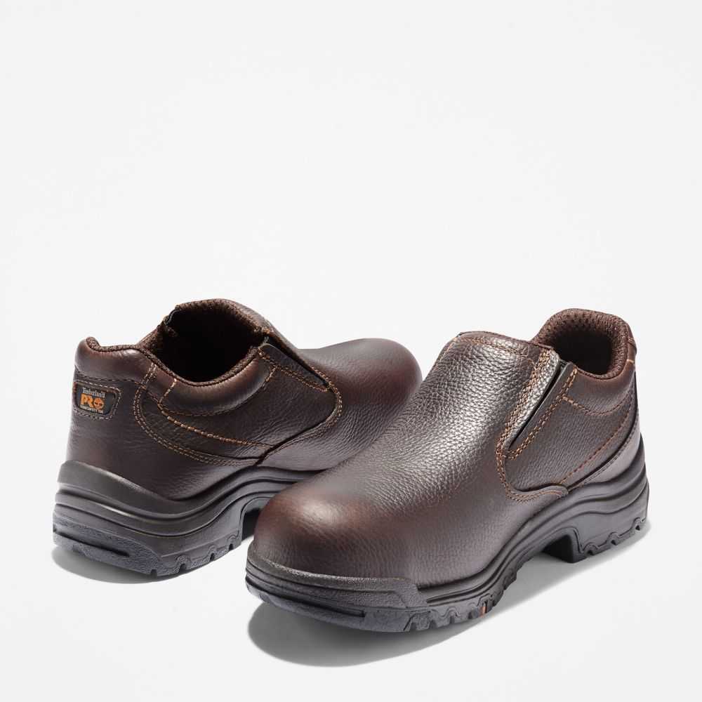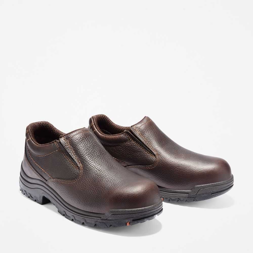 Durable,comfortable,and with casual looks,these slip-on style work shoes feature an alloy safety toe,anti-slip rubber outsole,and antimicrobial lining for odor control.