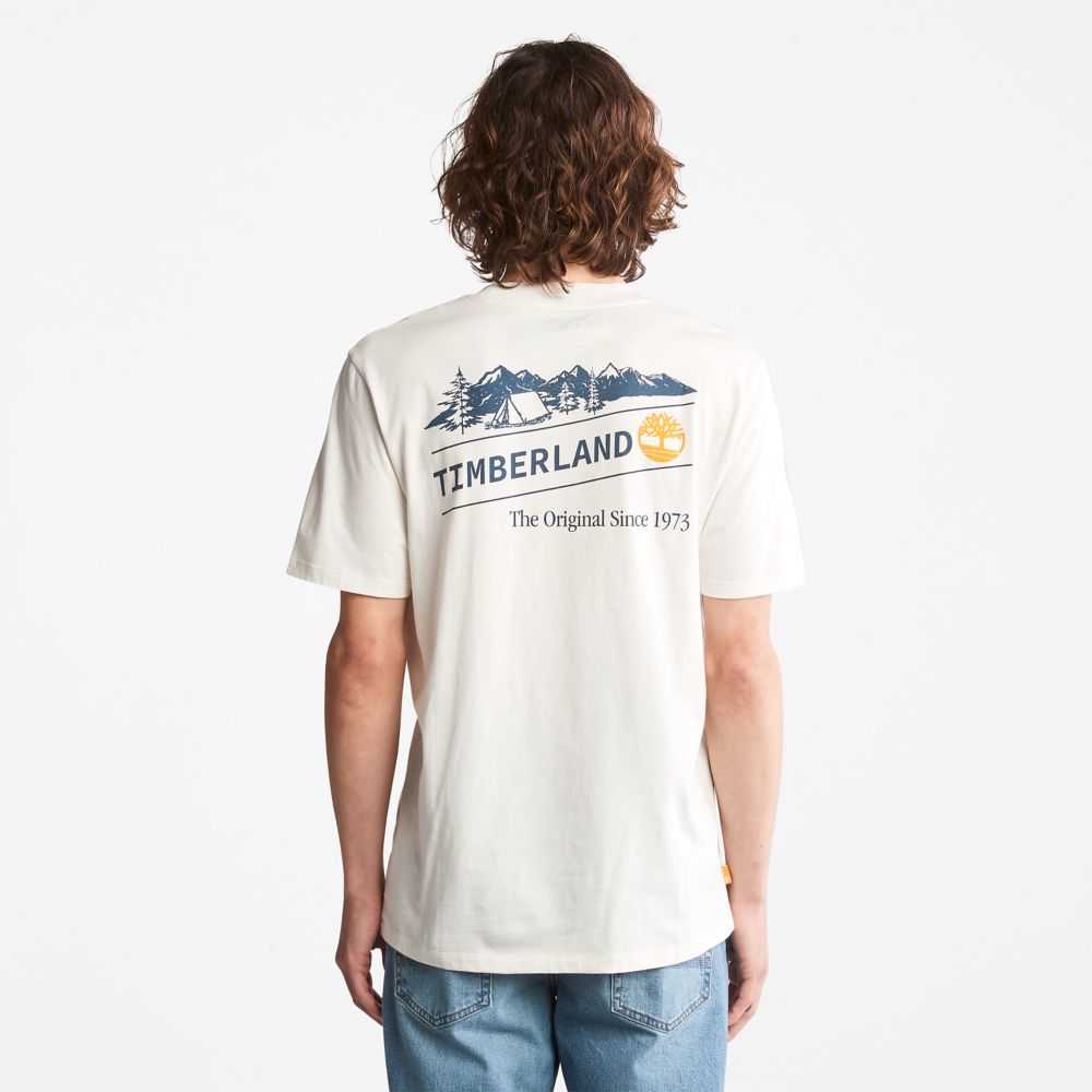 Display your love of the great outdoors with this men's tee featuring a dramatic outdoor-heritage graphic on the back.Organically grown cotton fabric shows your respect for the environment,too.